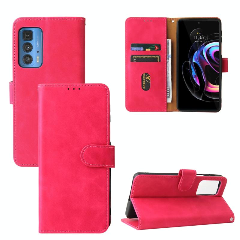 Solid Color Skin Feel Magnetic Buckle Horizontal Flip Calf Texture PU Leather Case with Holder & Card Slots & Wallet For Motorola Moto Edge 20 Pro(Rose Red)