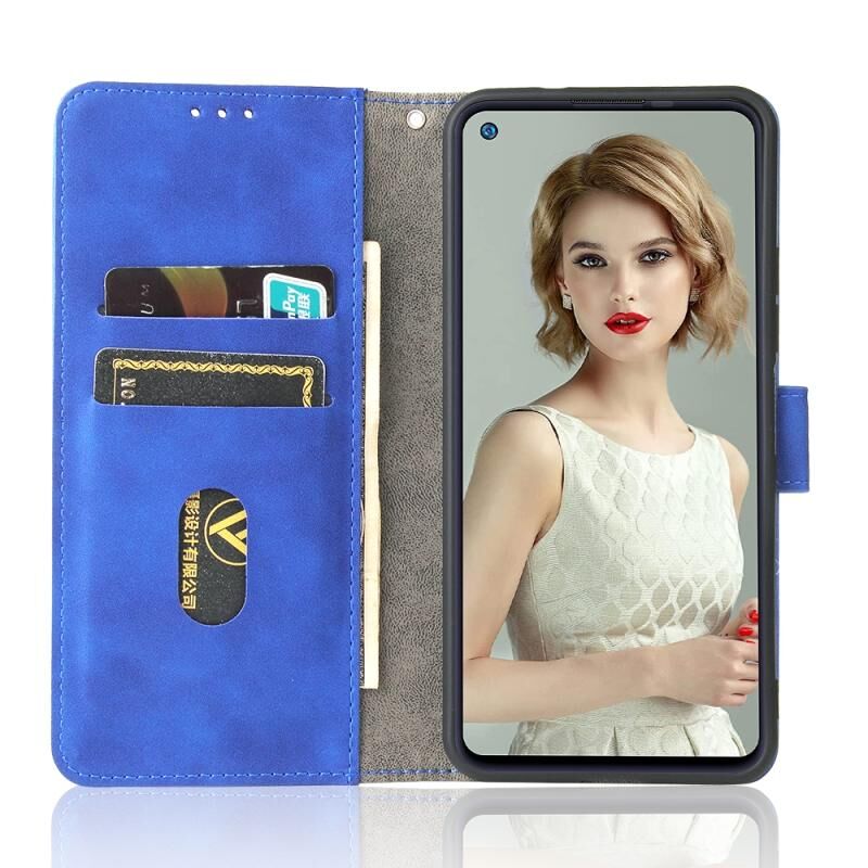 Αμιγές χρώμα δέρμα αίσθηση μαγνητική πόρπη οριζόντια Flip μοσχάρι υφή PU δέρμα υπόθεση με κάτοχο & υποδοχές καρτών & πορτοφόλι για Oukitel C21 Pro (μπλε)
