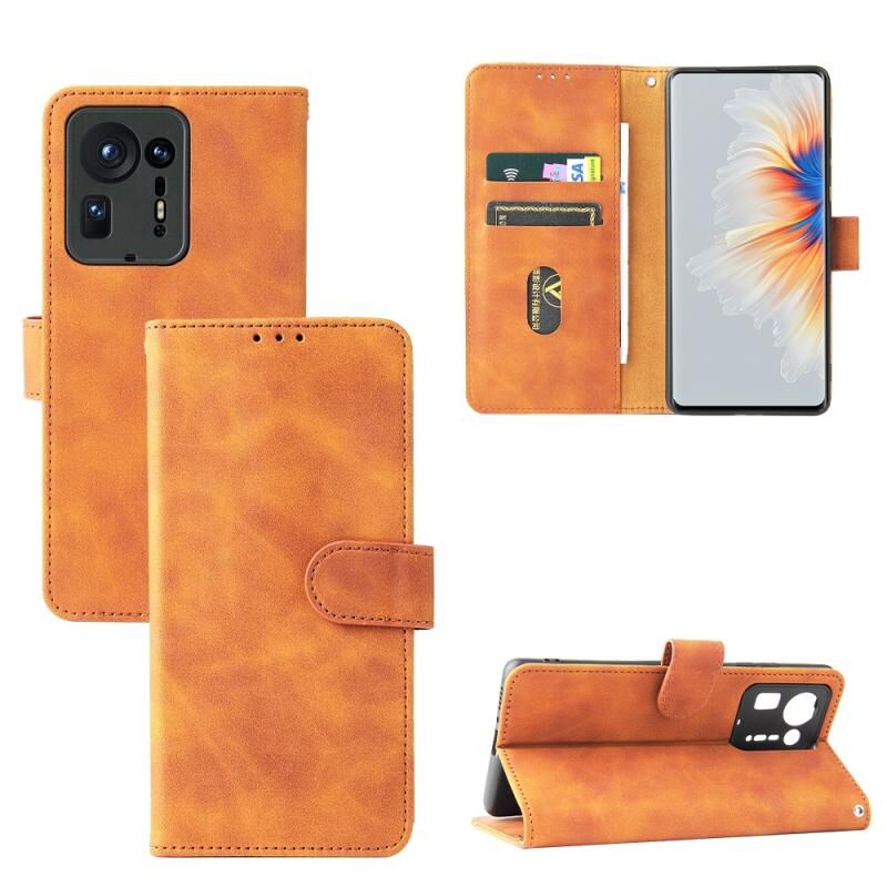 Αμιγές χρώμα δέρμα αίσθηση μαγνητική πόρπη οριζόντια Flip μοσχάρι υφή PU δέρμα υπόθεση με κάτοχο & υποδοχές καρτών & πορτοφόλι για Xiaomi Mix 4 (Καφέ)