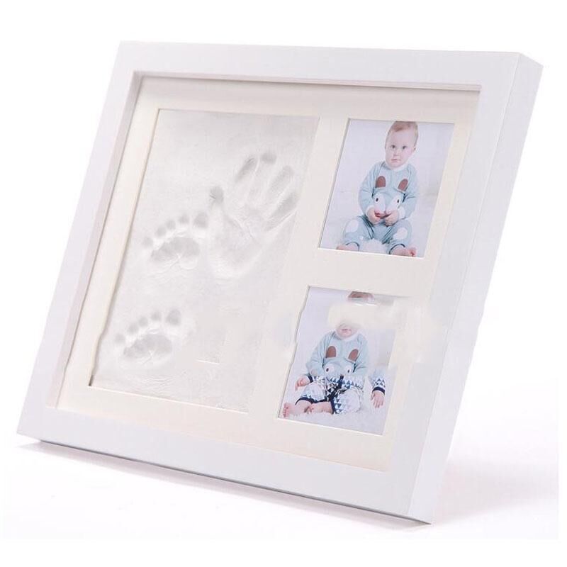 Solid Wood Three-frame BabyHands and Feet Mud Print Photo Frame with Cover(Black Photo Frame White Mud)