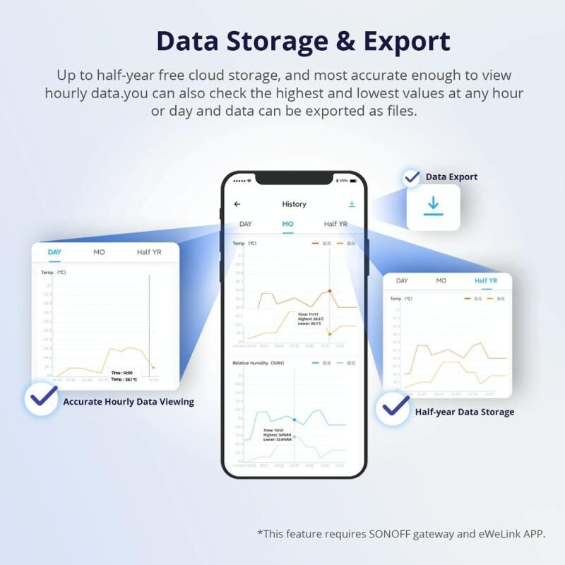 4. Up to half a year of cloud storage, you can query any time temperature and humidity data and support export files