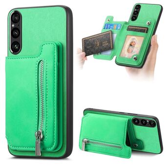 For Sony Xperia 1 V Retro MagSafe Zipper Wallet Card Bag Back Phone Case(Green)
