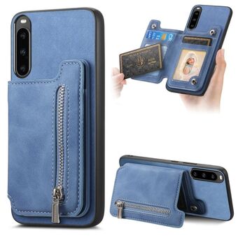 For Sony Xperia 10 V Retro MagSafe Zipper Wallet Card Bag Back Phone Case(Blue)