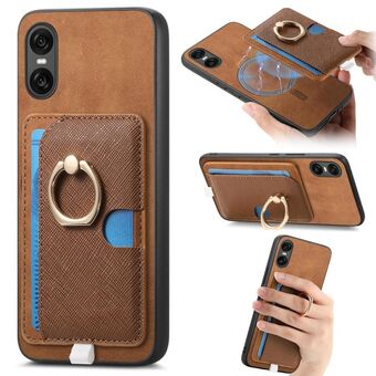 For Sony Xperia 10 VI Retro Cross Leather Ring Side Insert Card Bag MagSafe Phone Case(Brown)