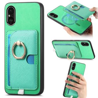 For Sony Xperia 10 VI Retro Cross Leather Ring Side Insert Card Bag MagSafe Phone Case(Green)