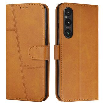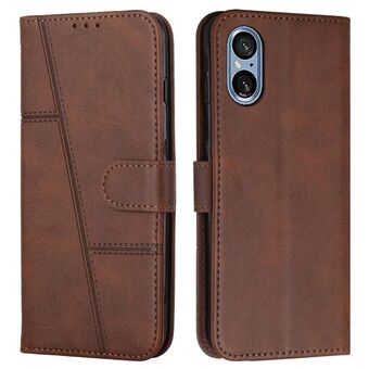For Sony Xperia 5 V Stitching Calf Texture Buckle Leather Phone Case(Brown)