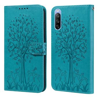 For Sony Xperia 10 III Tree & Deer Pattern Pressed Flip Leather Phone Case(Blue)