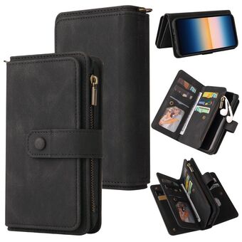 For Sony Xperia 10 III Skin Feel PU + TPU Horizontal Flip Leather Case With Holder & 15 Cards Slot & Wallet & Zipper Pocket & Lanyard(Black)
