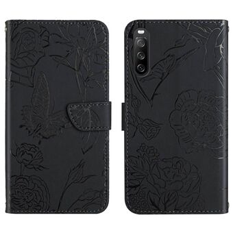 For Sony Xperia 10 V HT03 Skin Feel Butterfly Embossed Flip Leather Phone Case(Black)