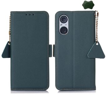For Sony Xperia 5 V Side-Magnetic TJ Genuine Leather RFID Phone Case(Green)