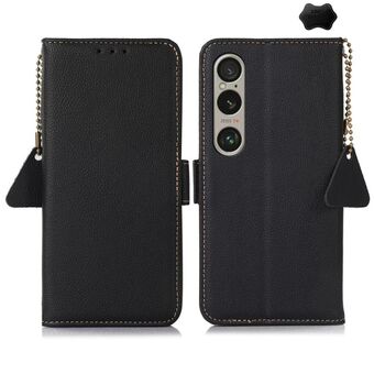 For Sony Xperia 5 III KHAZNEH Side-Magnetic Litchi Genuine Leather RFID Case(Black)