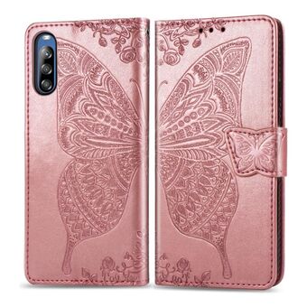 For Sony Xperia L4 Butterfly Love Flower Embossed Horizontal Flip Leather Case with Bracket / Card Slot / Wallet / Lanyard(Rose Gold)