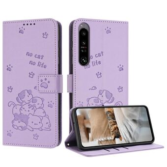 For Sony Xperia 1 IV Embossed Kitten Phone Leather Case with Lanyard(Purple)