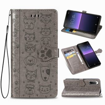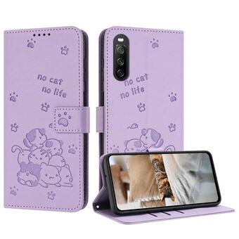 For Sony Xperia 10 IV Embossed Kitten Phone Leather Case with Lanyard(Purple)