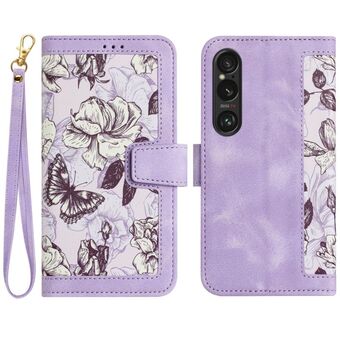 For Sony Xperia 5 V Floral Pattern Leather Phone Case with Lanyard(Light Purple)