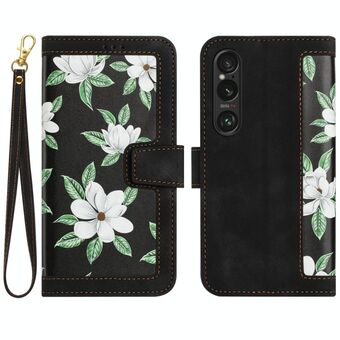 For Sony Xperia 1 VI Floral Pattern Leather Phone Case with Lanyard(Black)