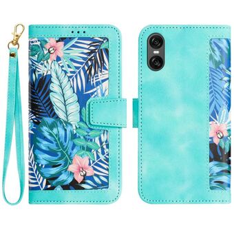 For Sony Xperia 10 V Floral Pattern Leather Phone Case with Lanyard(Green)