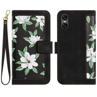 For Sony Xperia 10 VI Floral Pattern Leather Phone Case with Lanyard(Black)