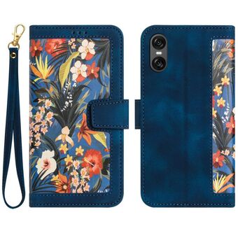 For Sony Xperia 10 VI Floral Pattern Leather Phone Case with Lanyard(Dark Blue)
