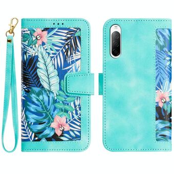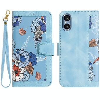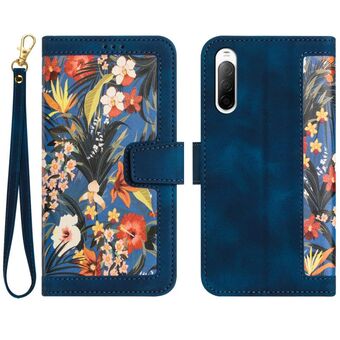 For Sony Xperia 10 V Floral Pattern Leather Phone Case with Lanyard(Light Blue)