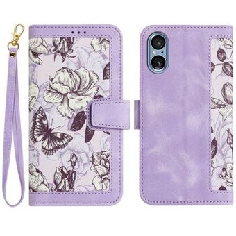 For Sony Xperia 10 VI Floral Pattern Leather Phone Case with Lanyard(Light Purple)