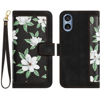 For Sony Xperia 5 V Floral Pattern Leather Phone Case with Lanyard(Black)