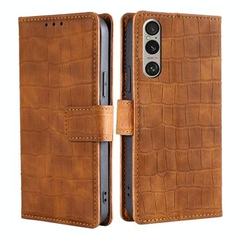 For Sony Xperia 10 VI Skin Feel Crocodile Magnetic Clasp Leather Phone Case(Brown)