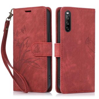 For Sony Xperia 10 III Orchid Butterfly Embossed Leather Phone Case(Red)