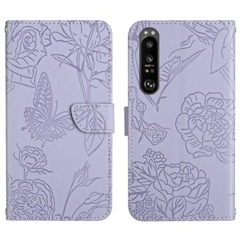 For Sony Xperia 10 V HT03 Skin Feel Butterfly Embossed Flip Leather Phone Case(Purple)