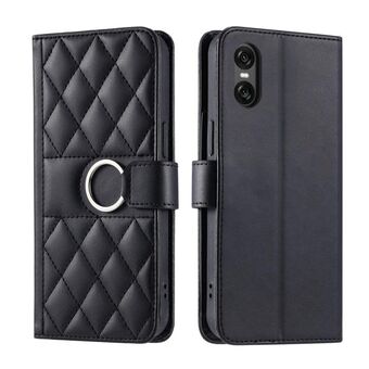 For Sony Xperia 5 VI 2024 Ring Buckle Rhombic Leather Phone Case(Black)