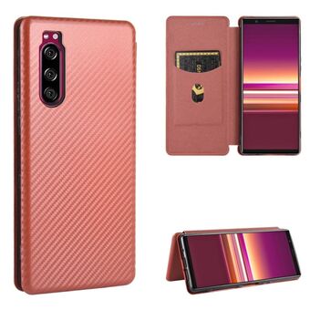 For Sony Xperia 5 ll Carbon Fiber Texture Horizontal Flip TPU + PC + PU Leather Case with Card Slot(Brown)