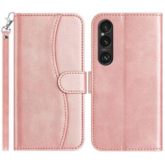 For Sony Xperia 1 VI Dual-Folded S-shape Leather Phone Case(Rose Gold)