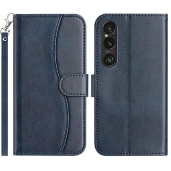 For Sony Xperia 1 VI Dual-Folded S-shape Leather Phone Case(Navy Blue)