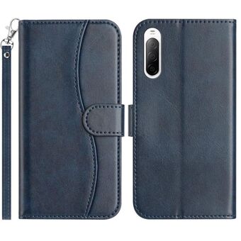 For Sony Xperia 10 V 2023 Dual-Folded S-shape Leather Phone Case(Navy Blue)