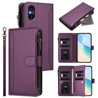 For Sony Xperia 10 V 2023 Magnetic Closure 9 Card Slots Zipper Leather Case with Hand Strap(Purple)
