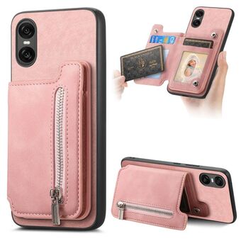 For Sony Xperia 10 VI Retro MagSafe Zipper Wallet Card Bag Back Phone Case(Pink)