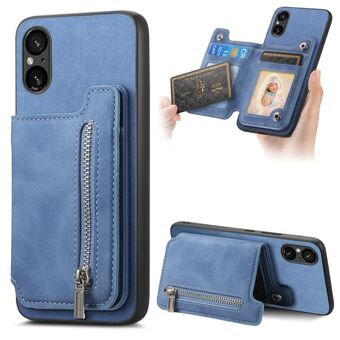 For Sony Xperia 5 V Retro MagSafe Zipper Wallet Card Bag Back Phone Case(Blue)
