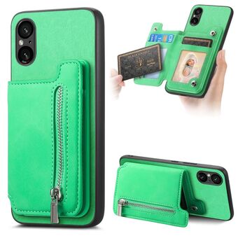 For Sony Xperia 5 V Magnetic Closure 9 Card Slots Zipper Leather Case with Hand Strap(Dark Green)
