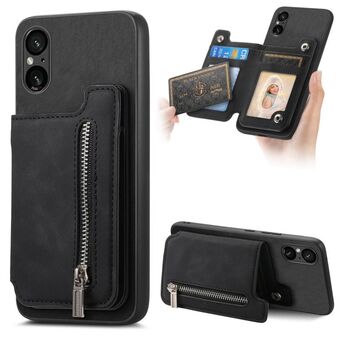 For Sony Xperia 5 V Magnetic Closure 9 Card Slots Zipper Leather Case with Hand Strap(Black)