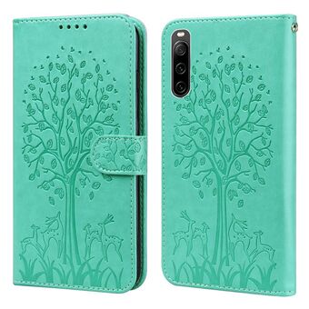 For Sony Xperia 10 IV Tree & Deer Pattern Pressed Flip Leather Phone Case(Green)