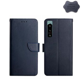 For Sony Xperia 5 IV Genuine Leather Fingerprint-proof Flip Phone Case(Blue)