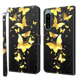 For Sony Xperia 5 IV 3D Painting Pattern TPU + PU Phone Case(Gold Butterfly)