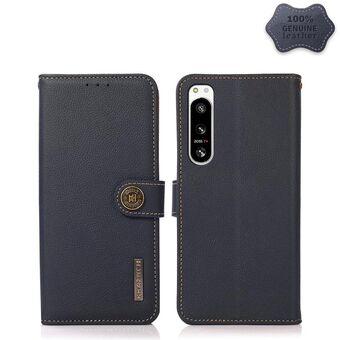 For Sony Xperia 5 IV KHAZNEH Custer Genuine Leather RFID Phone Case(Blue)