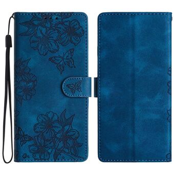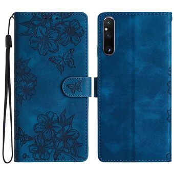 For Sony Xperia 1 IV Cherry Blossom Butterfly Skin Feel Embossed PU Phone Case(Blue)