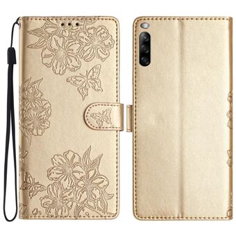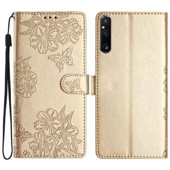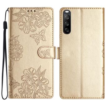For Sony Xperia 10 V Cherry Blossom Butterfly Skin Feel Embossed PU Phone Case(Gold)