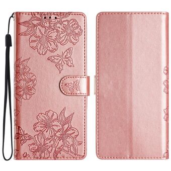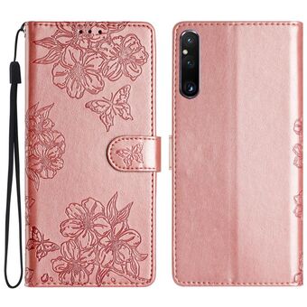 For Sony Xperia 1 IV Cherry Blossom Butterfly Skin Feel Embossed PU Phone Case(Rose Gold)