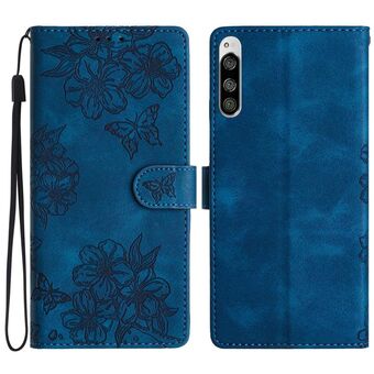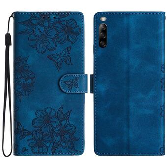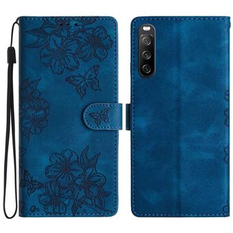 For Sony Xperia 10 V Cherry Blossom Butterfly Skin Feel Embossed PU Phone Case(Blue)