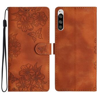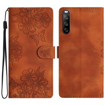 For Sony Xperia 10 V Cherry Blossom Butterfly Skin Feel Embossed PU Phone Case(Brown)