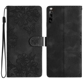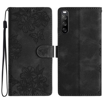 For Sony Xperia 10 V Cherry Blossom Butterfly Skin Feel Embossed PU Phone Case(Black)