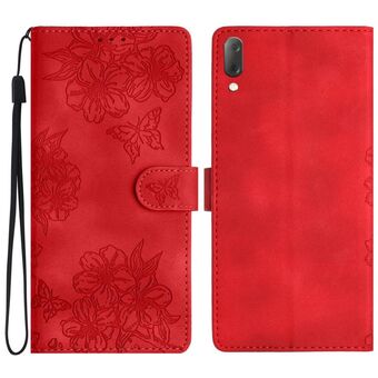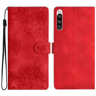 For Sony Xperia 10 V Cherry Blossom Butterfly Skin Feel Embossed PU Phone Case(Red)